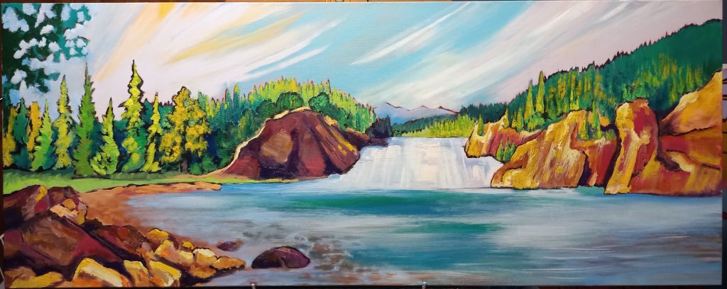 Beautiful Bow Falls | Acrylic / Oil | 16″ x 40″